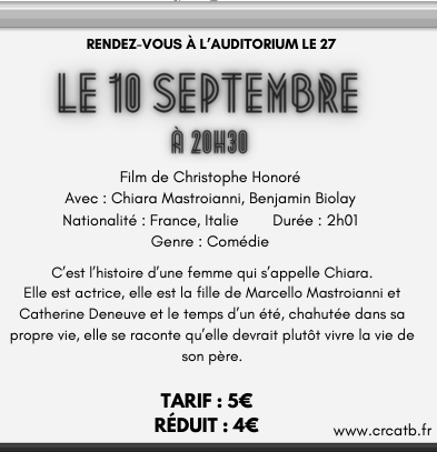 CINEMA : MARCELLO MIO + Ajouter à mon Agenda Google + iCal / Outlook export Date 10/Sep/2024 Expired! Heure 20h30 - 23h00 Lieu Centre Culturel le Vingt-Sept Le Vingt-Sept, 139 Boulevard d'Encamp, 16170 Rouillac Organisateur Le Club des Cinéphiles Partagez cet événement