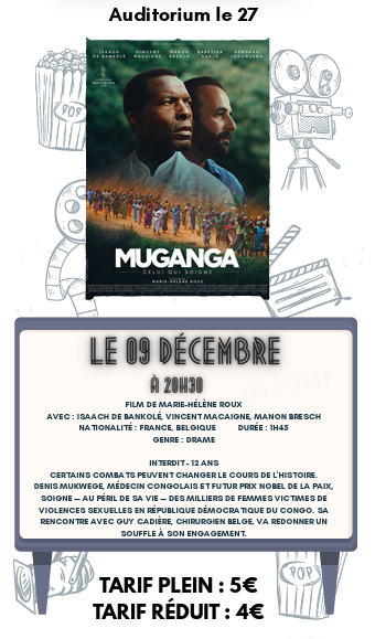 CINEMA : MUGANGA + Ajouter à mon Agenda Google + iCal / Outlook export Date 09/Déc/2025 Heure 20h30 - 23h00 Lieu Centre Culturel le Vingt-Sept Le Vingt-Sept, 139 Boulevard d'Encamp, 16170 Rouillac Organisateur Le Club des Cinéphiles Partagez cet événement