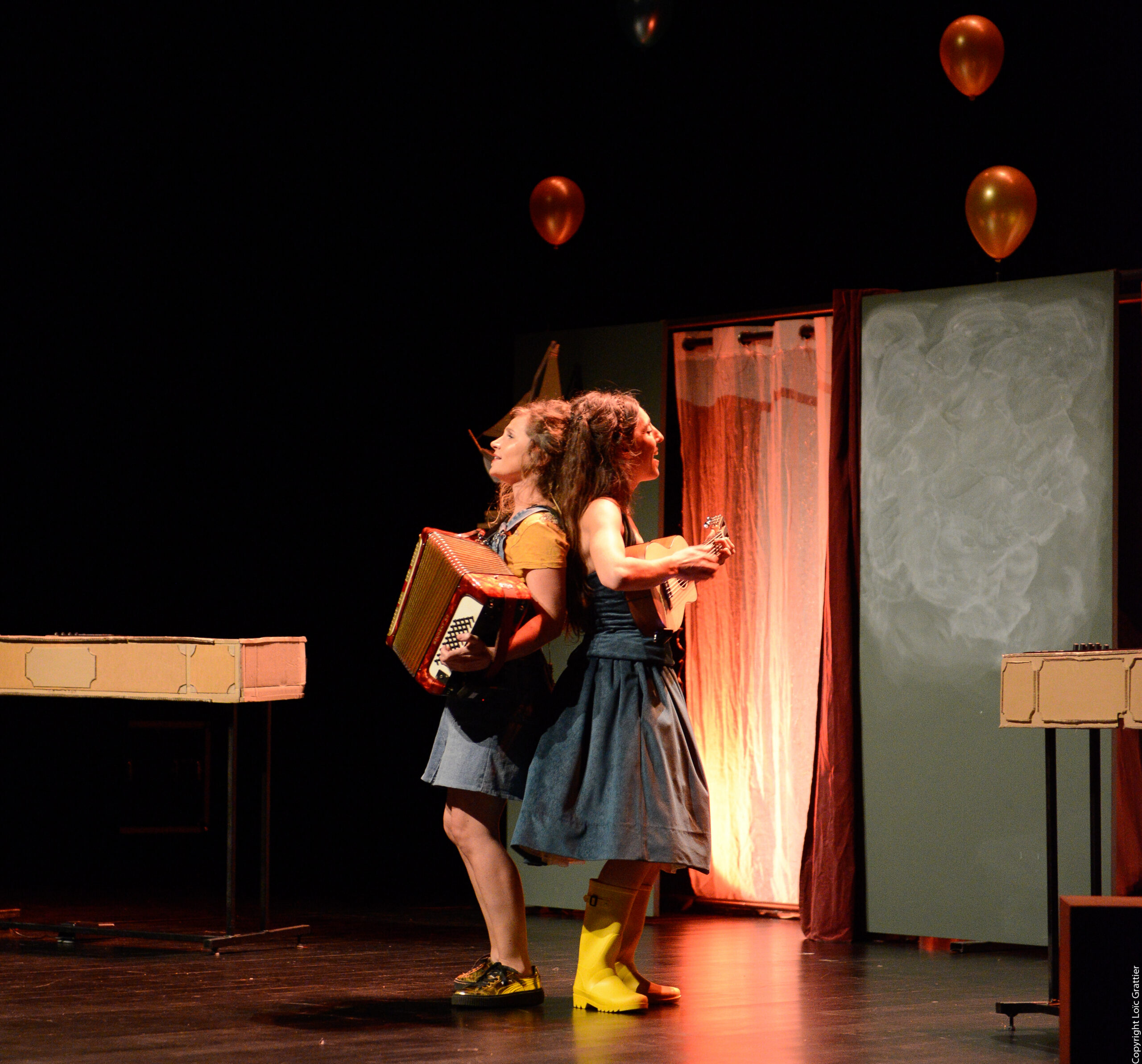 Écriture, jeu, chant, piano, accordéon, mélodica : Alice Amanieu / Écriture, jeu, chant, guitare, clavier, guitalélé, ukulélé : Marie Gambaro / Création sonore : N’Dembo Ziavoula et Pierre- Alain Pous / Création lumière : Aude Le Clech et N’Dembo Ziavoula / Scénographie : Cécile Lena et Marc Valladon / Costumes : Hervé Poeydomenge