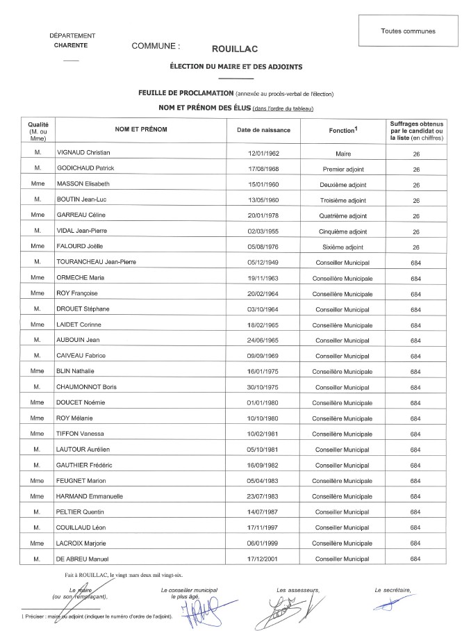 Maire : Monsieur Christian VIGNAUD